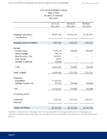 City of Mansfield Annual Budget and Service Program Fiscal Year 2025-2026 Table of Contents