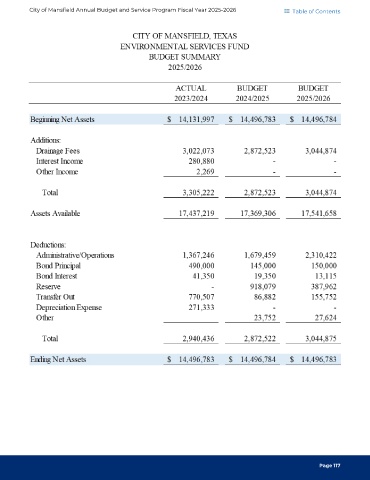 City of Mansfield Annual Budget and Service Program Fiscal Year 2025-2026 Table of Contents Page 117