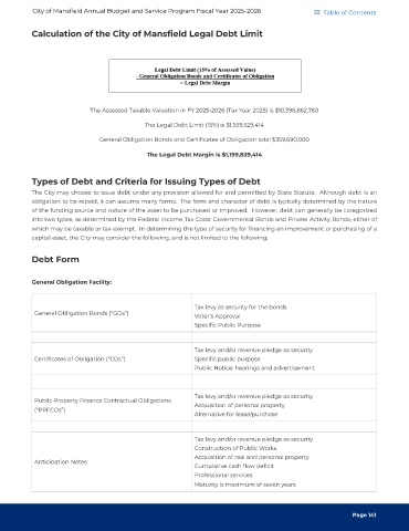 City of Mansfield Annual Budget and Service Program Fiscal Year 2025-2026 Table of Contents