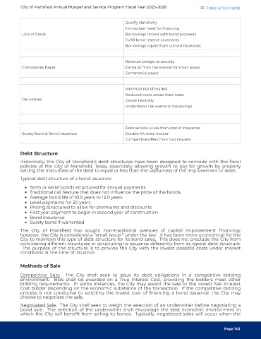 City of Mansfield Annual Budget and Service Program Fiscal Year 2025-2026 Table of Contents