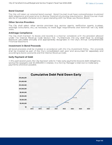saving the taxpayers over $4,000,000 in interest. It is the City Manager’s intention to make early