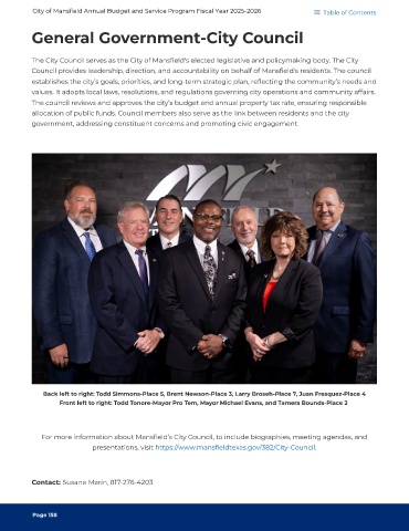 City of Mansfield Annual Budget and Service Program Fiscal Year 2025-2026 Table of Contents