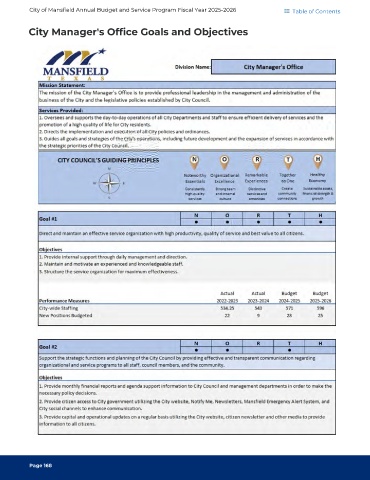City of Mansfield Annual Budget and Service Program Fiscal Year 2025-2026 Table of Contents City Manager's Office Goals and Objectives Page 168