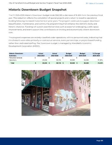 rather than dedicated staffing. The Downtown budget is managed by Mansfield's Economic