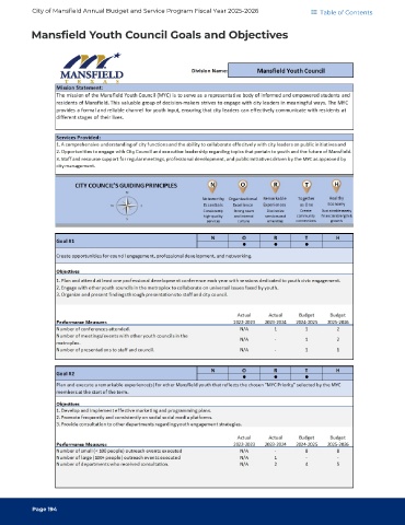 City of Mansfield Annual Budget and Service Program Fiscal Year 2025-2026 Table of Contents Mansfield Youth Council Goals and Objectives Page 194