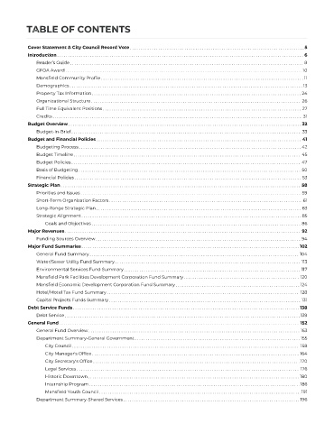 TABLE OF CONTENTS