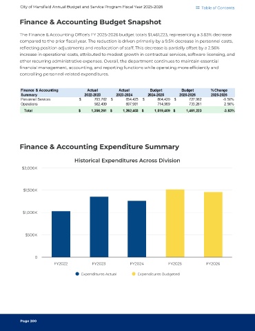 The Finance & Accounting Office’s FY 2025-2026 budget totals $1,461,223, representing a 3.83% decrease