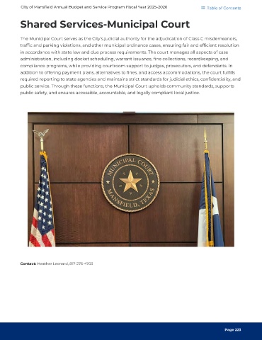City of Mansfield Annual Budget and Service Program Fiscal Year 2025-2026 Table of Contents