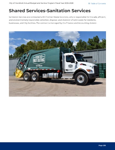 City of Mansfield Annual Budget and Service Program Fiscal Year 2025-2026 Table of Contents