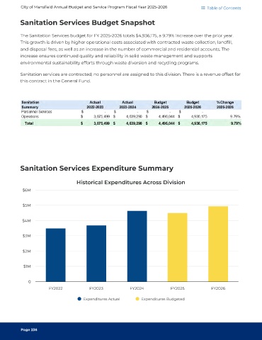The Sanitation Services budget for FY 2025-2026 totals $4,936,175, a 9.79% increase over the prior year.