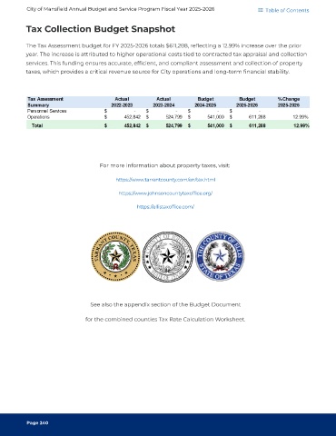 year. The increase is attributed to higher operational costs tied to contracted tax appraisal and collection