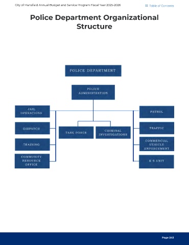 City of Mansfield Annual Budget and Service Program Fiscal Year 2025-2026 Table of Contents Police Department Organizational Structure Page 243