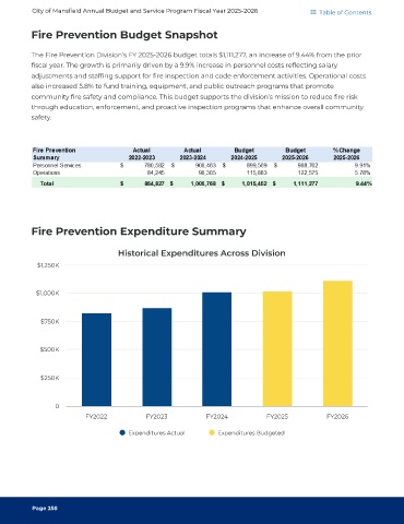 Fire Prevention Budget Snapshot