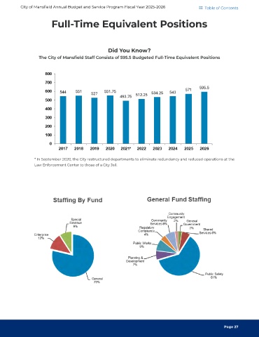 The City of Mansfield Staff Consists of 595.5 Budgeted Full-Time Equivalent Positions