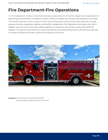 City of Mansfield Annual Budget and Service Program Fiscal Year 2025-2026 Table of Contents