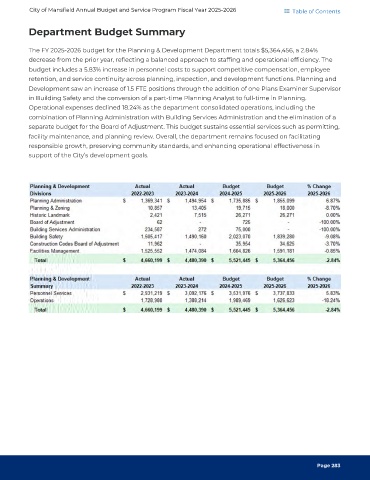 The FY 2025-2026 budget for the Planning & Development Department totals $5,364,456, a 2.84%