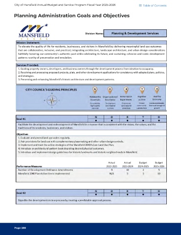 City of Mansfield Annual Budget and Service Program Fiscal Year 2025-2026 Table of Contents Planning Administration Goals and Objectives Page 288