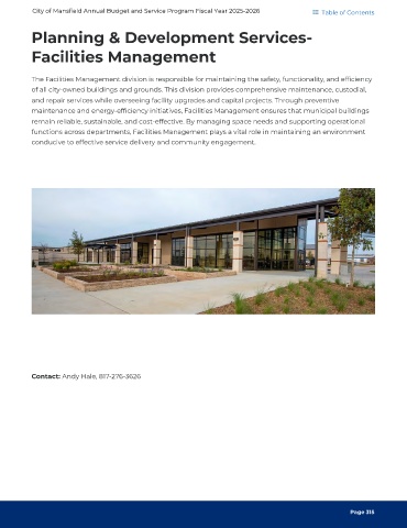 City of Mansfield Annual Budget and Service Program Fiscal Year 2025-2026 Table of Contents