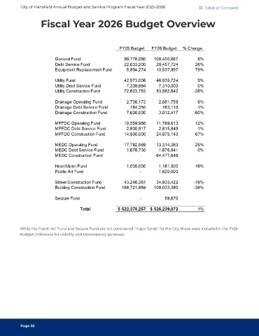 City of Mansfield Annual Budget and Service Program Fiscal Year 2025-2026 Table of Contents