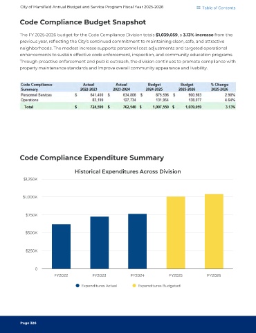 The FY 2025-2026 budget for the Code Compliance Division totals 3.13% increase