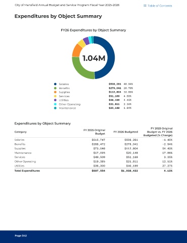 FY26 Expenditures by Object Summary