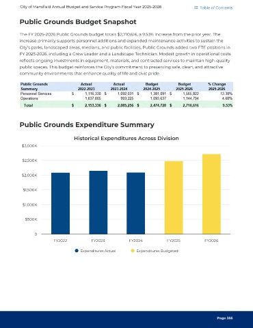City’s parks, landscaped areas, medians, and public facilities. Public Grounds added two FTE positions in