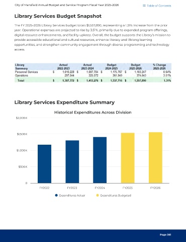 digital resource enhancements, and facility upkeep. Overall, the budget supports the Library’s mission to