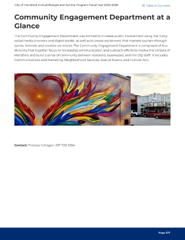 City of Mansfield Annual Budget and Service Program Fiscal Year 2025-2026 Table of Contents