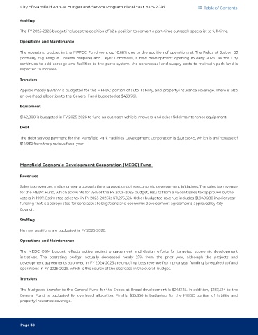 City of Mansfield Annual Budget and Service Program Fiscal Year 2025-2026 Table of Contents