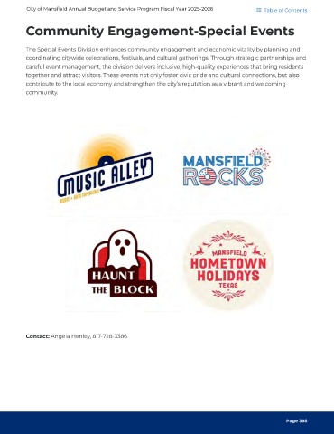 City of Mansfield Annual Budget and Service Program Fiscal Year 2025-2026 Table of Contents