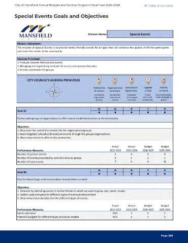 City of Mansfield Annual Budget and Service Program Fiscal Year 2025-2026 Table of Contents Special Events Goals and Objectives Page 389