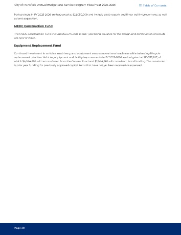 City of Mansfield Annual Budget and Service Program Fiscal Year 2025-2026 Table of Contents