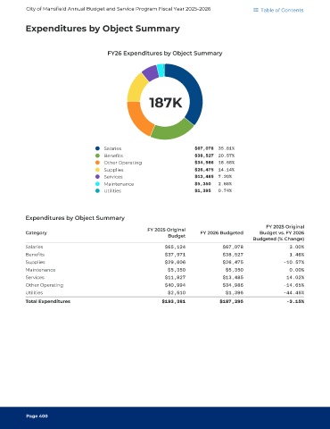 City of Mansfield Annual Budget and Service Program Fiscal Year 2025-2026 Table of Contents