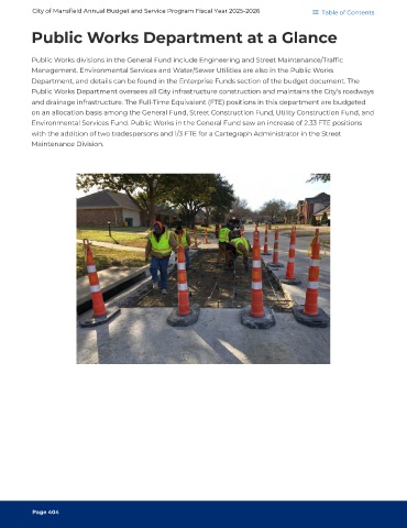 and drainage infrastructure. The Full-Time Equivalent (FTE) positions in this department are budgeted