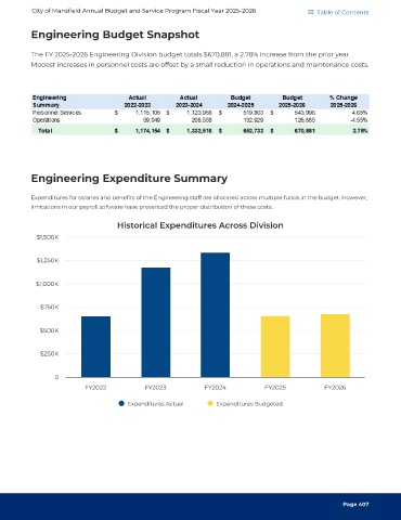 The FY 2025-2026 Engineering Division budget totals $670,881, a 2.78% increase from the prior year.