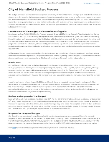 City of Mansfield Annual Budget and Service Program Fiscal Year 2025-2026 Table of Contents