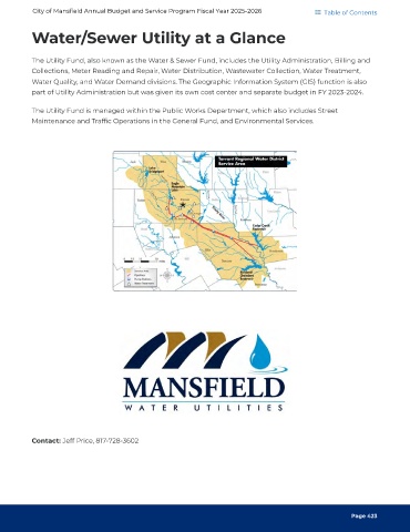 City of Mansfield Annual Budget and Service Program Fiscal Year 2025-2026 Table of Contents