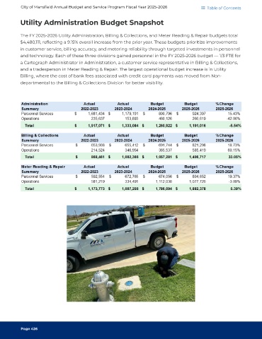 The FY 2025-2026 Utility Administration, Billing & Collections, and Meter Reading & Repair budgets total