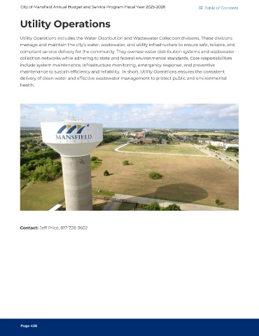 City of Mansfield Annual Budget and Service Program Fiscal Year 2025-2026 Table of Contents