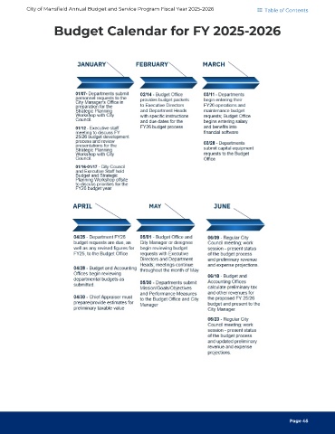 City of Mansfield Annual Budget and Service Program Fiscal Year 2025-2026 Table of Contents Budget Calendar for FY 2025-2026 Page 45