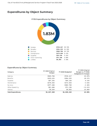 City of Mansfield Annual Budget and Service Program Fiscal Year 2025-2026 Table of Contents