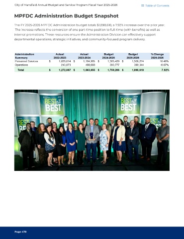 City of Mansfield Annual Budget and Service Program Fiscal Year 2025-2026 Table of Contents