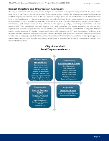 The City of Mansfield’s operating and capital budgets are developed as integrated components of the City’s overall