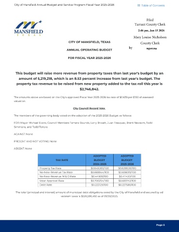City of Mansfield Annual Budget and Service Program Fiscal Year 2025-2026 Table of Contents