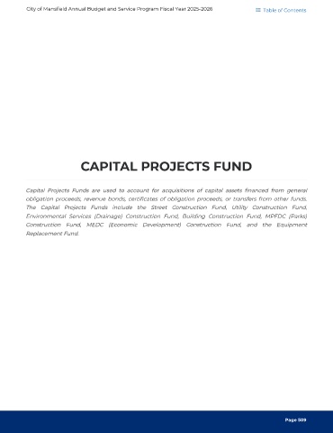 City of Mansfield Annual Budget and Service Program Fiscal Year 2025-2026 Table of Contents