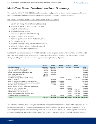 The majority of the FY 2025-2026 Street Construction budget is for projects that were approved in prior