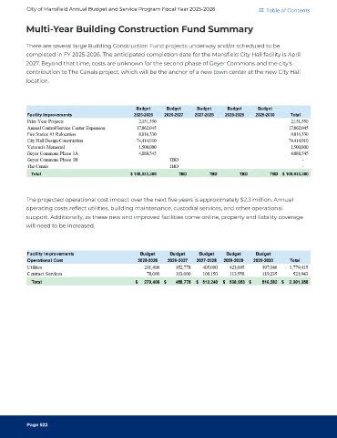 completed in FY 2025-2026. The anticipated completion date for the Mansfield City Hall facility is April