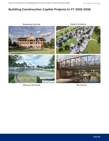 City of Mansfield Annual Budget and Service Program Fiscal Year 2025-2026 Table of Contents Building Construction Capital Projects in FY 2025-2026 Page 523