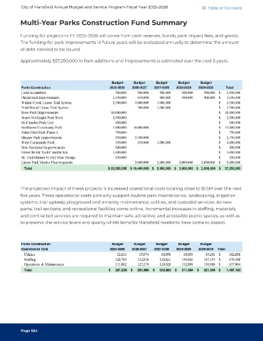 Multi-Year Parks Construction Fund Summary