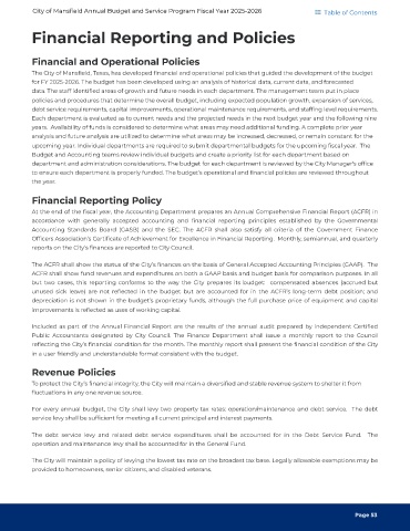City of Mansfield Annual Budget and Service Program Fiscal Year 2025-2026 Table of Contents